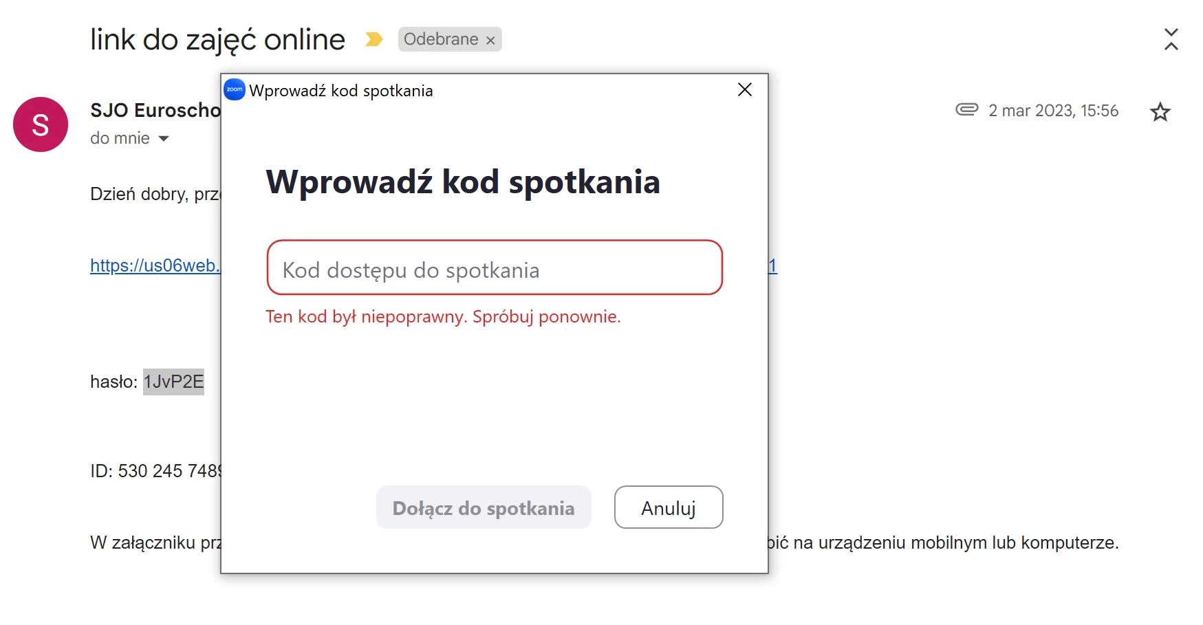 some of my students has problem with joining meeting. I send them private link to the meeting and the access code and they recive the information that the code is incorrect (but for other students it works). What could be a reason?