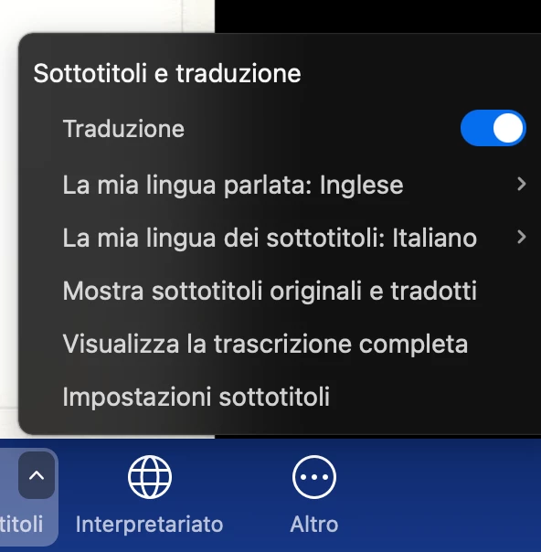I clicked on Transcript, selected the original language: English, and the language for the transcript: Italian.