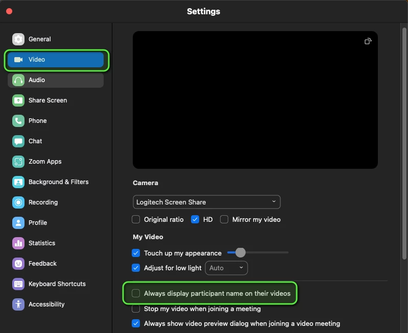 When I'm on a Zoom call, the names of participants display for a second or two and then disappear. I have to keep moving my cursor over the main window to bring them back.