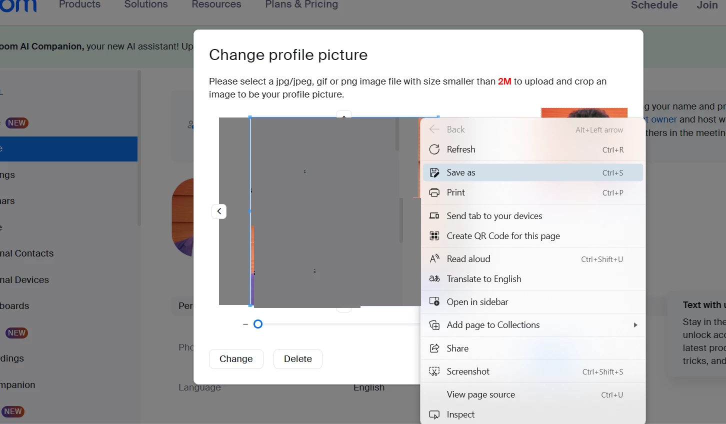 Hello all! Is there any way I can download and/or copy my profile picture in Zoom? I would like to use it for my Gmail account, but the original photo exists on a drive that failed. Thanks, in advance!