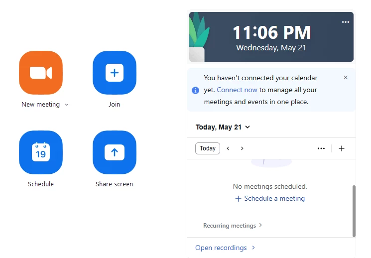 I just updated Zoom to version 6.4.10 for Windows and I can no longer find my recurring meetings with no fixed time. There used to be a tiny small drop down menu on the Home page, but now the page looks almost the same, but that menu is gone. Where did it go? I can look at past meetings to get the address and join the meetings manually, but that can't be the only way, right?