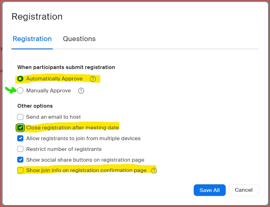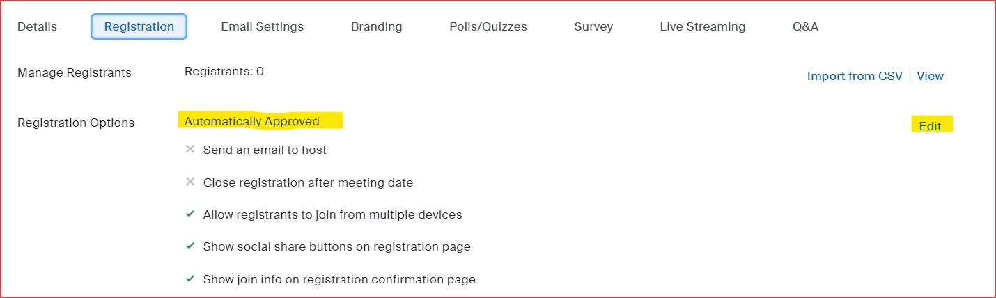 However, when I create an invite link to send to users, the link allows for anyone to register for the meeting on the spot and getting automatically approved to join the meeting. This defeats the entire purpose of having a registrant list. I cannot enable the manual approval setting because there would be far too many registrants to iterate through.