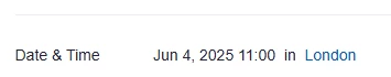 NnataliebirchNewcomerForum|Forum|8 months agoMay 28, 2025QuestionRegistration page showing the event as IN LONDONForum|Forum|8 months agoMay 28, 20250 replies0 viewsThe registration page shows the event as IN LONDON - where the time of the event is listed it states "11am in London" which causes confusion for some registrants. Is there a way to change this so it reads "11am GMT"?Meeting Features
