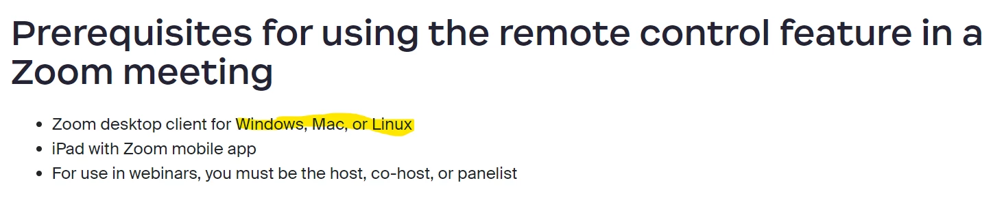 When the host tries to get the learner to give Remote Control to her in the Zoom meeting, this feature is not available on the Chromebook.
