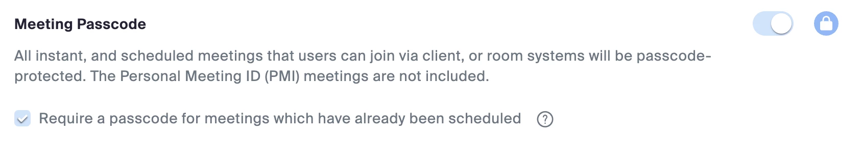 Is it because of my plan or is there any guide on how to remove the passcodes from all meetings?