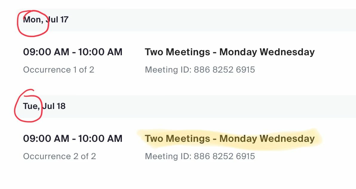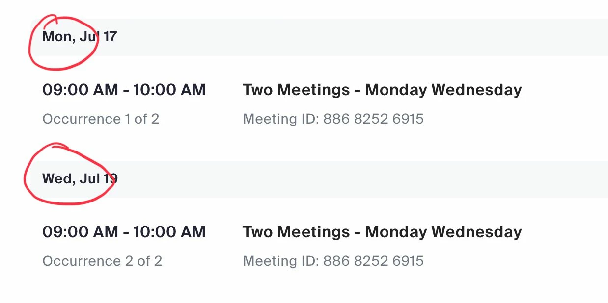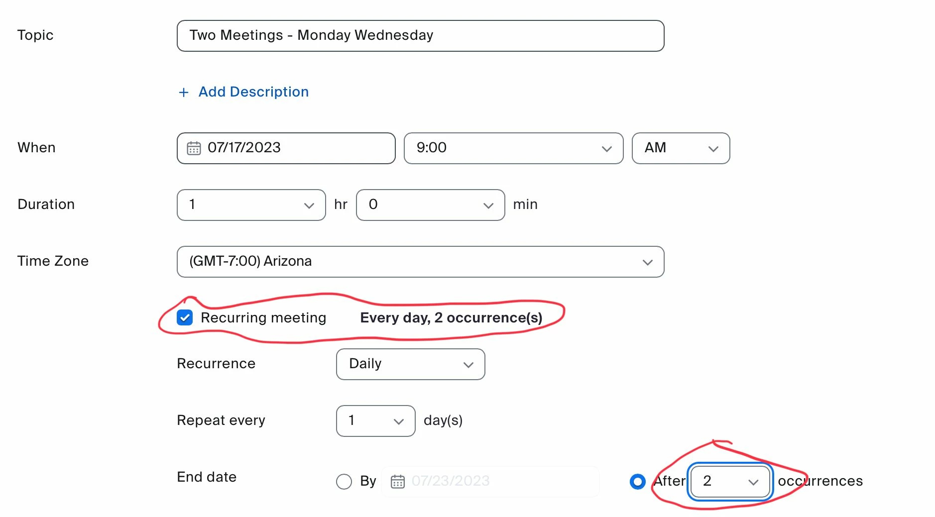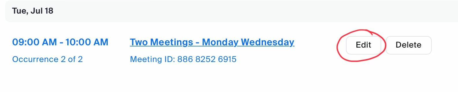 I do private tutoring through zoom. I have a student who wants to take a class Monday morning and then Wednesday night. How do I create a reoccuring meeting with the same meeting ID, but on different days and times?
