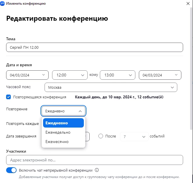 Now menu for repetitive conferences looks like here