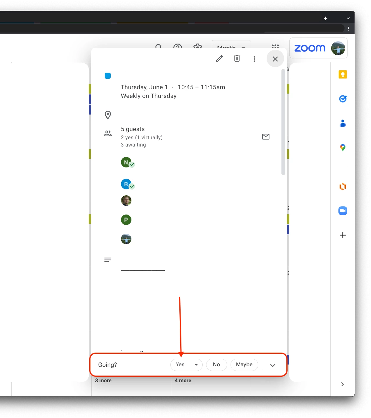 If you are a Google Workspace user, you could leverage using the Zoom for Google Workspace add-on and use the "Going?" functionality in GCal, where you will individually add the users as 'guests', however, I still don't believe using Google Workspace is free to users. Users can use that functionality though in your use case for RSVP'ing for a meeting from Gcal.