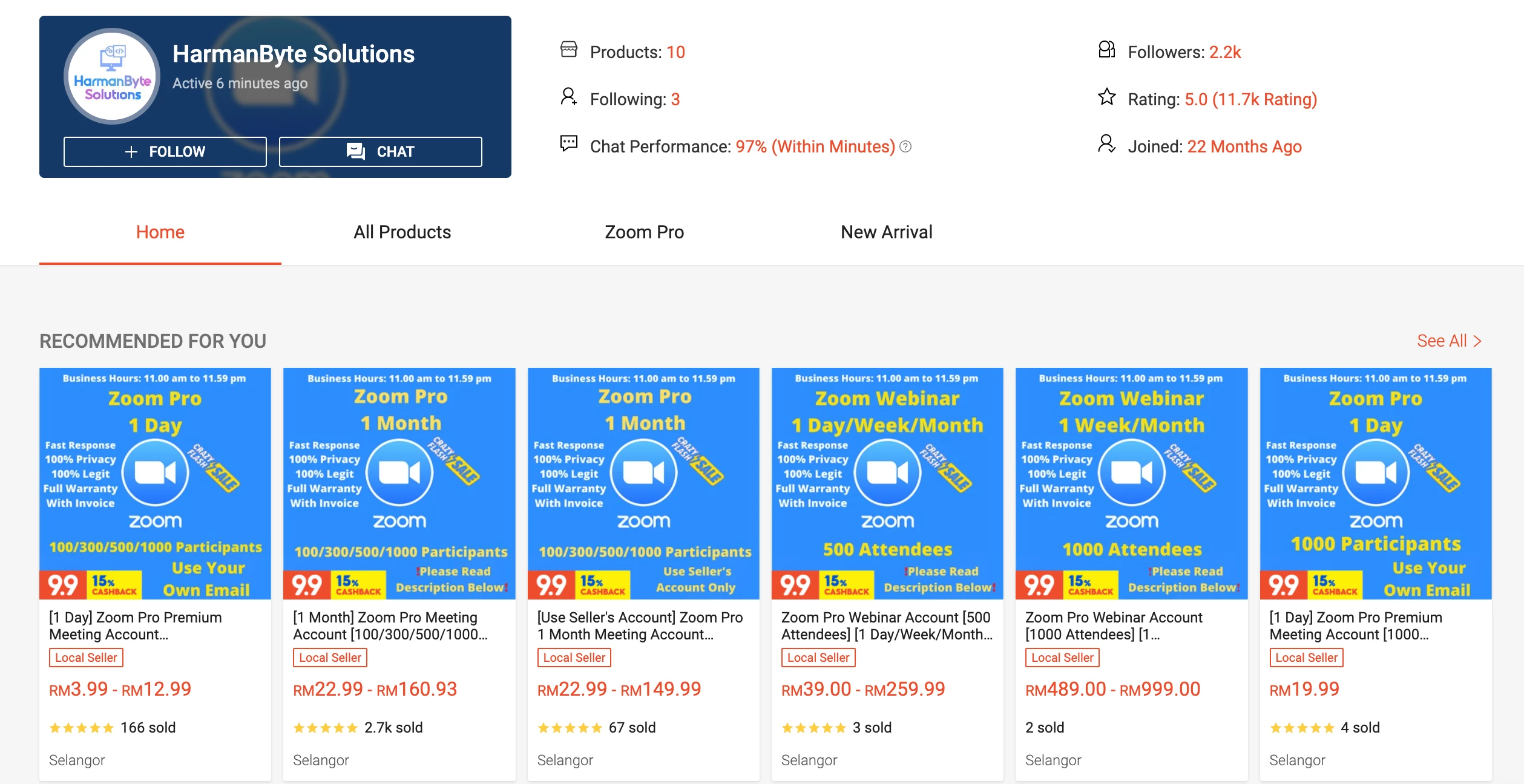 Dear Zoom admins, I want to alert you to the issue of licenses created via hacked credit cards on this Shopee platform. Here is a particular shop that have garnered over 11k ratings over reselling Zoom licenses illegally. I hope you can reflect this issue to the respective platform so as to secure your reputation as the only official distributor of Zoom licenses so that users will not have their privacy compromised. Thank you.
