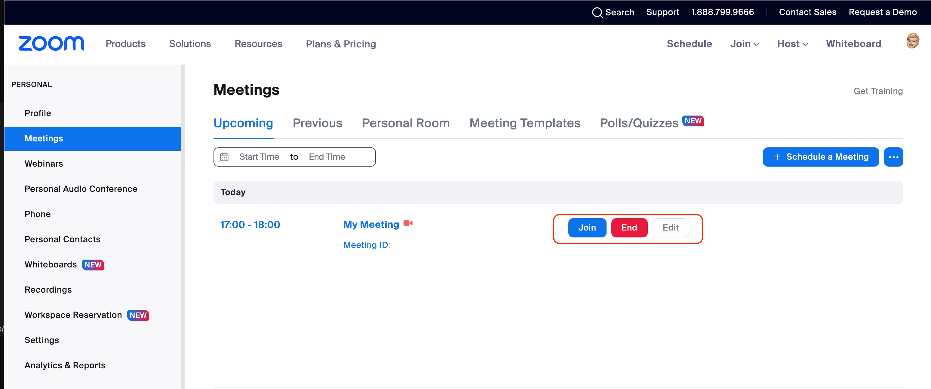 From there you have the option to start, end, or edit the meeting.