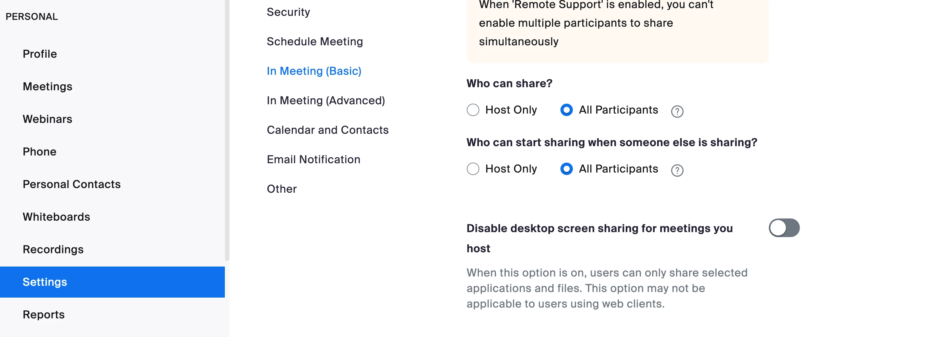 In the In Meeting basic section find ScreenSharing