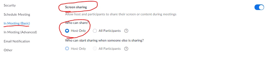 sharing only the host screen