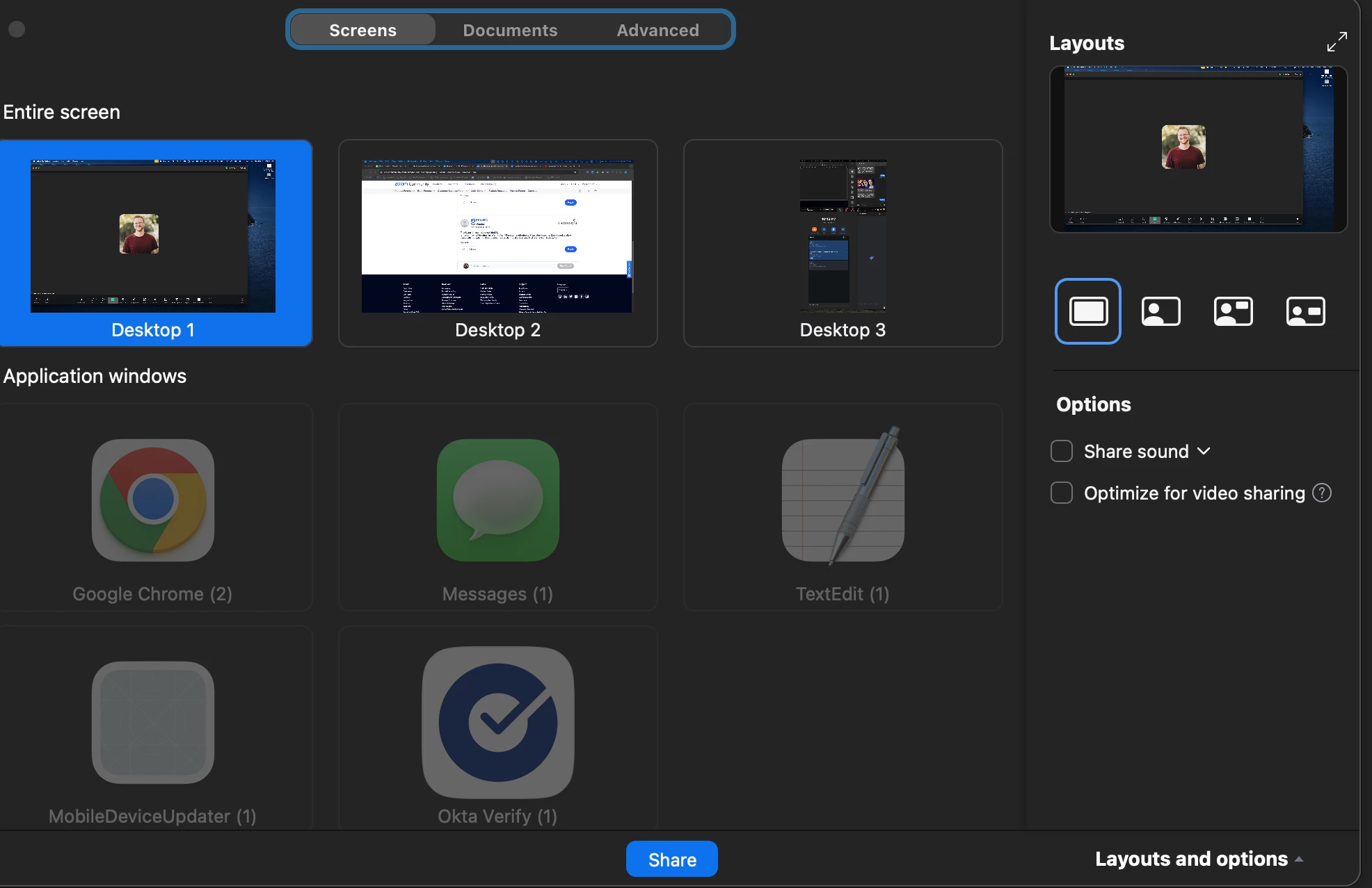 Is there a way to restore the ability to share specific screens (e.g. Screen 1, Screen 2) in the current version of Zoom Workplace? This is an absolutely crucial feature that has been removed in recent versions.