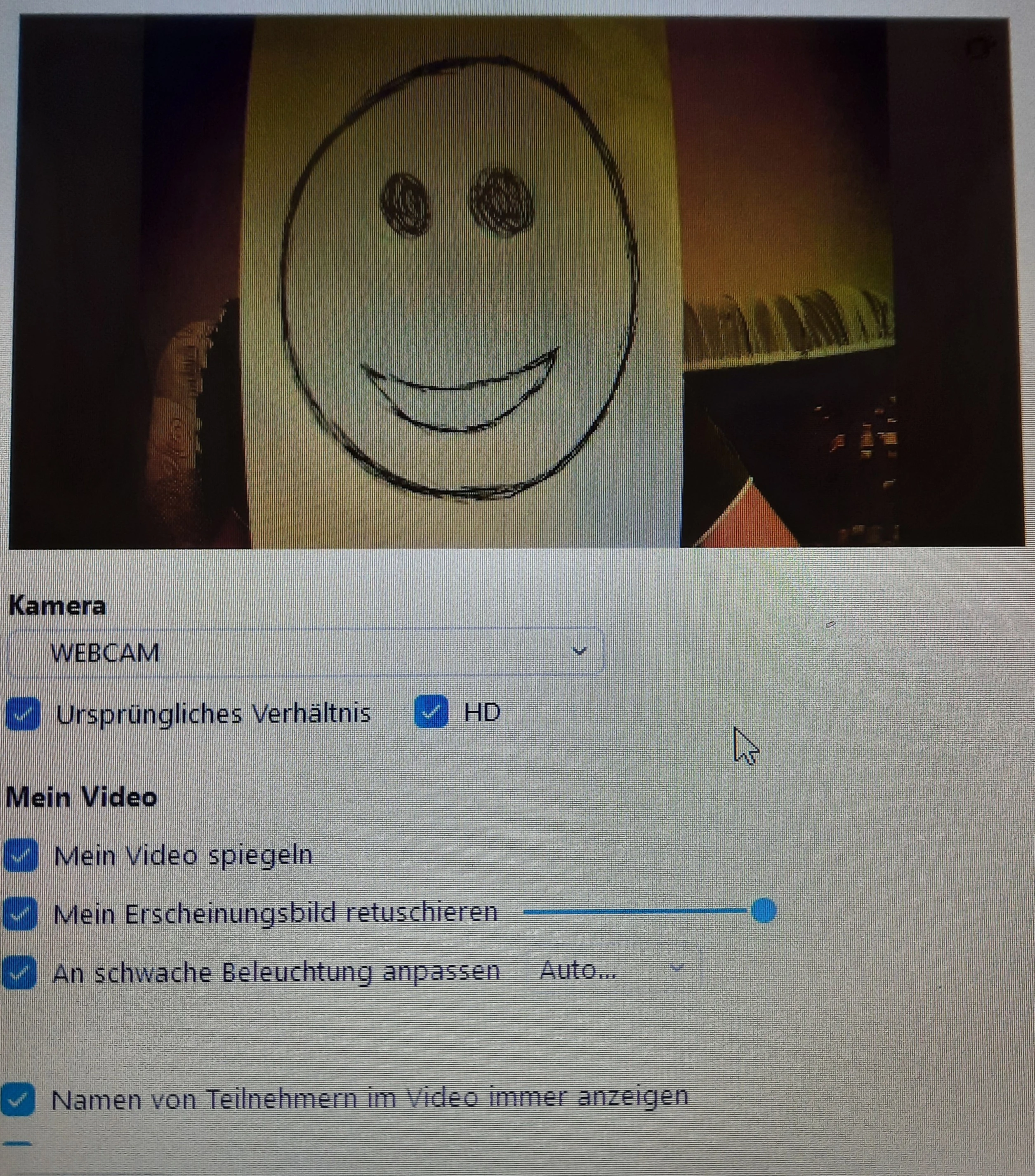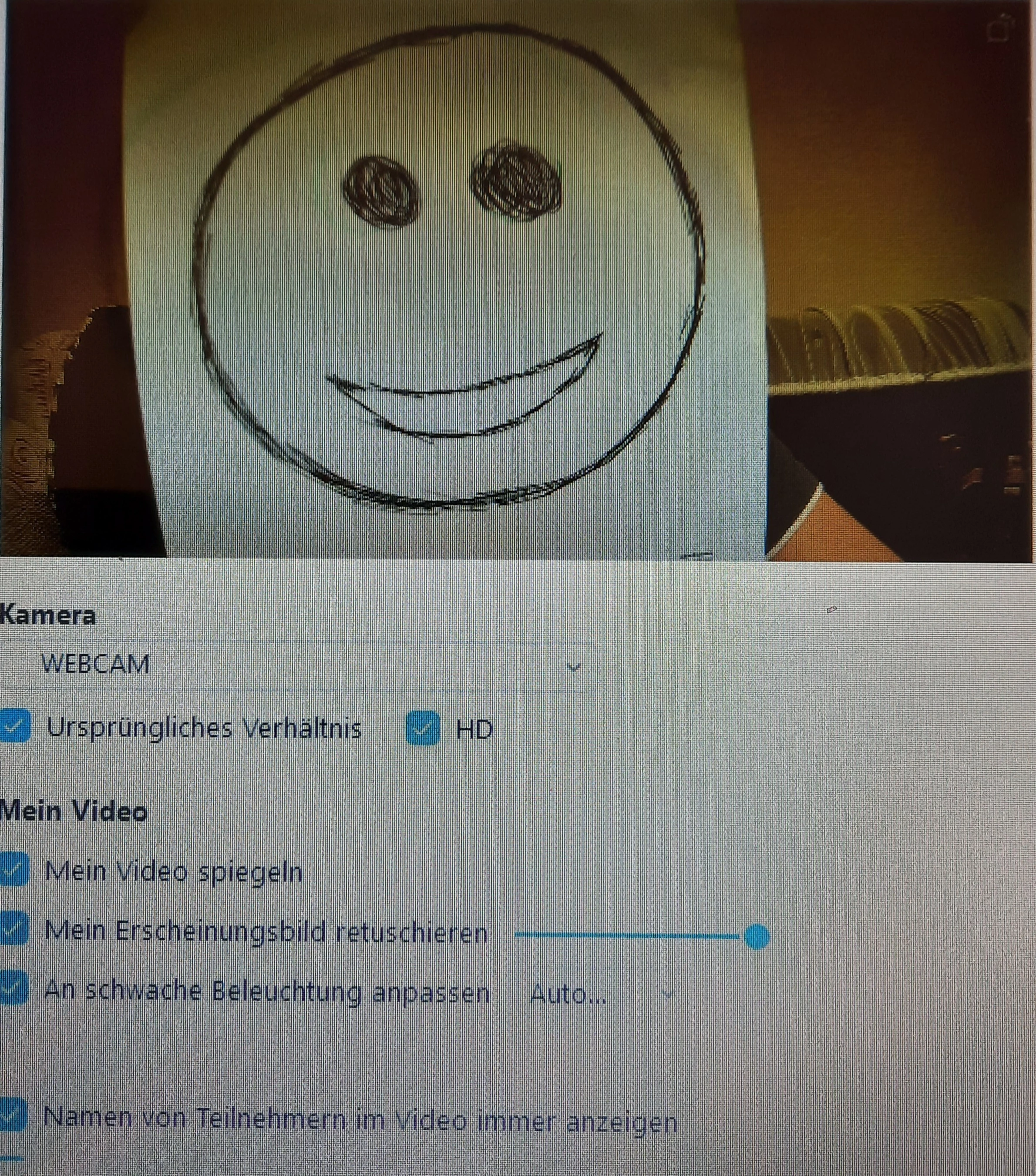The weird thing is that although I have copied the settings onto my new laptop, the image is compressed horizontally. What's even stranger is that the image only looks compressed in the Zoom-app, and elsewhere it is displayed correctly. For example, on my laptop's camera app everything looks fine, but when Zoom is running it looks like the sides have been pressed together. I checked multiple times on my old laptop, and everything was fine.