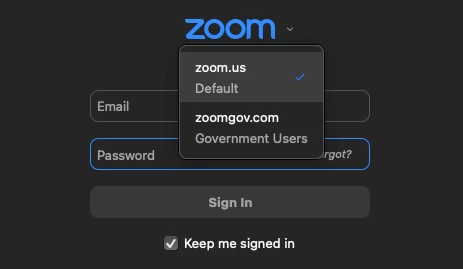 Switching between zoom and zoomgov