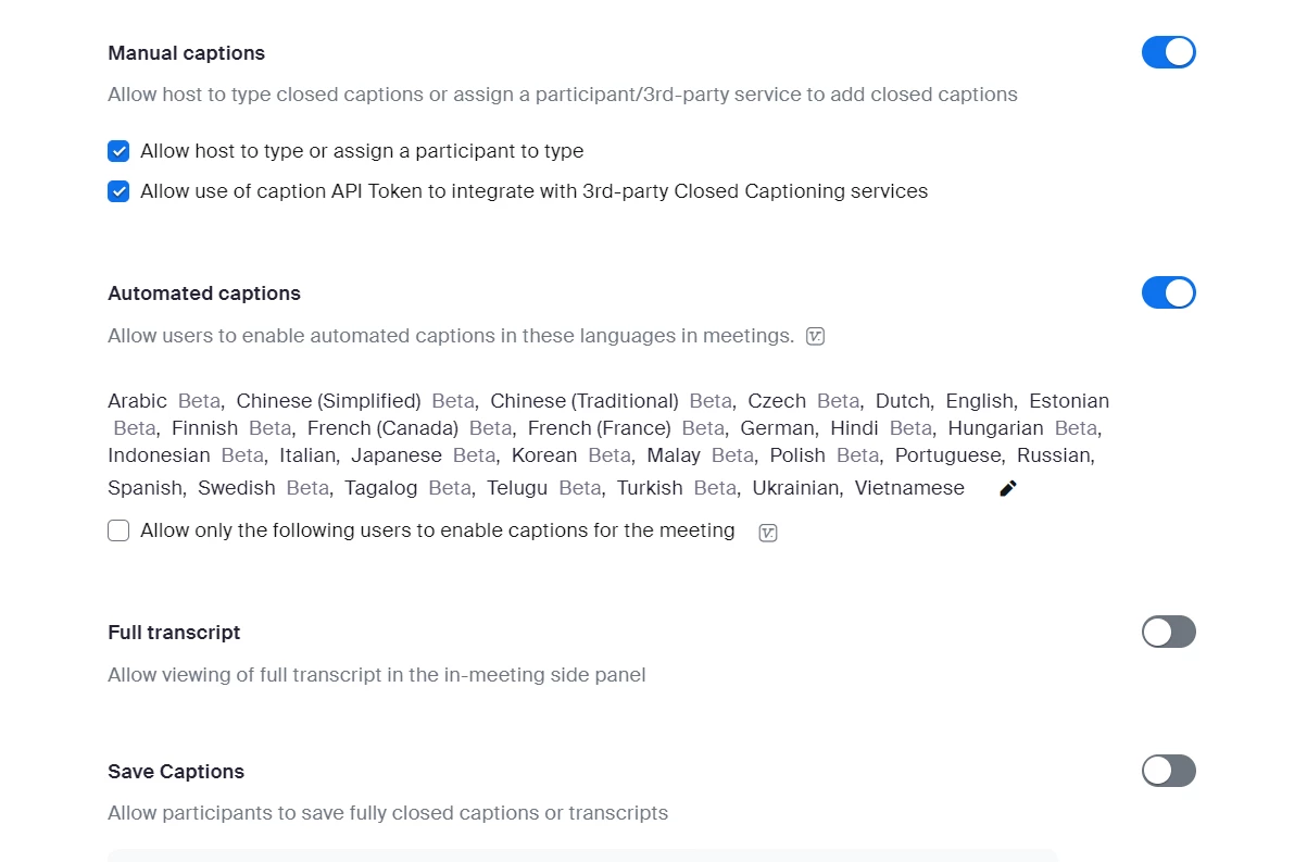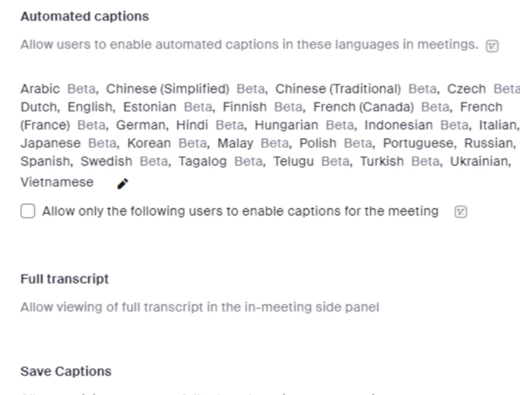 Hi, I wanted to ask the community about Translated Captions. Our company works with a global audience and we have an Enterprise account. I can't figure out why the Translated Captions option is not in our portal. The first picture is what we see and the second picture is what we want to see (with the option to enable the feature) . If anyone can assist that would be great. Thanks.