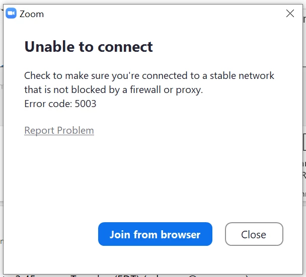 I am getting an unable to login to Zoom meeting error on my work laptop out of the blue. I have been attending various meetings weekly for the last year.