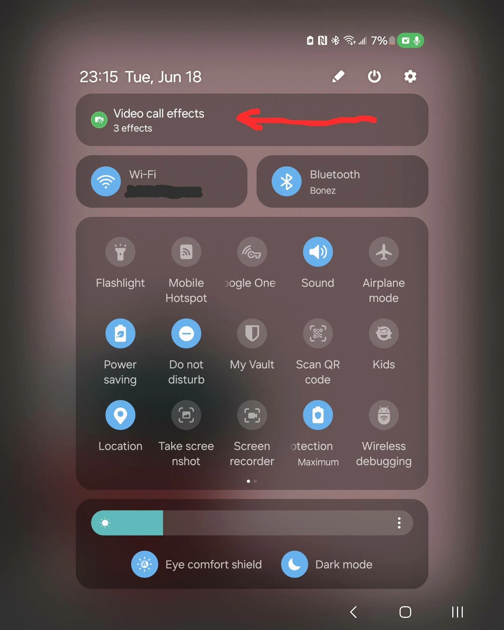 - While in a video call (can be by yourself in a Zoom call), drag down the Android Status Bar (twice, to fully expand quick settings). At this point, a "Video Call Effects" option should show up at the top. Accessing this now allows the Background to be turned off.