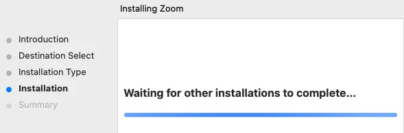 Upon downloading newly and reinstallation, the installer completely stopped again with the message window “Waiting for other installations to complete.” When I try to quit the installer I get this message, “The Installer is busy. The window can’t be closed.”