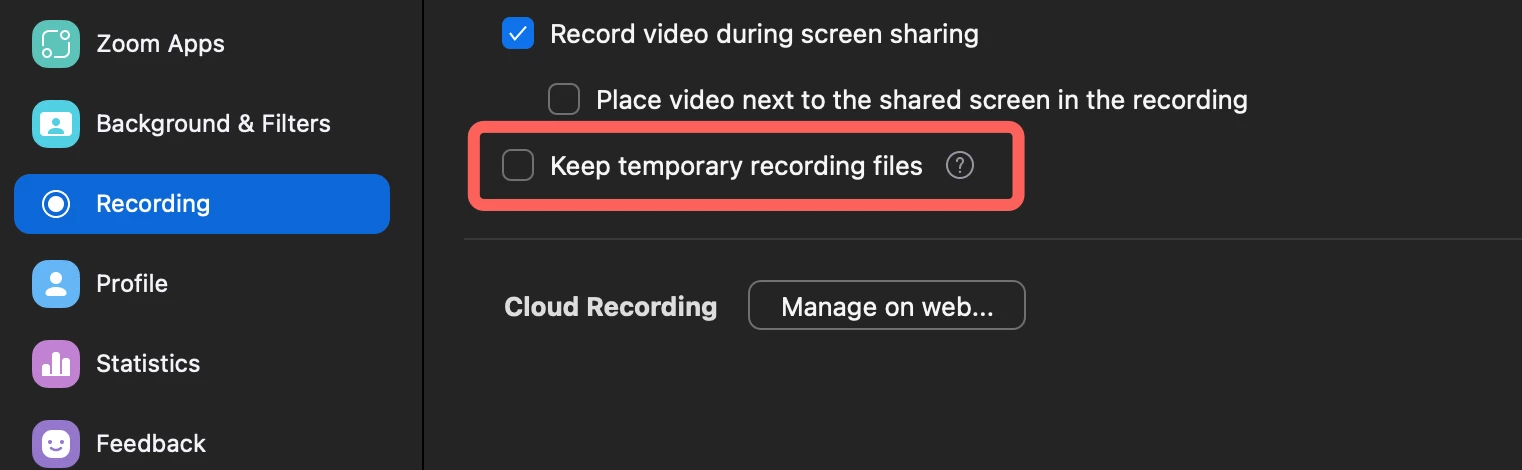 What are those files for? Can I somehow automatically delete them? A colleague - using Windows - says that his automatically delete once it's converted. Is this a Mac setting issue? Or a Zoom setting issue?