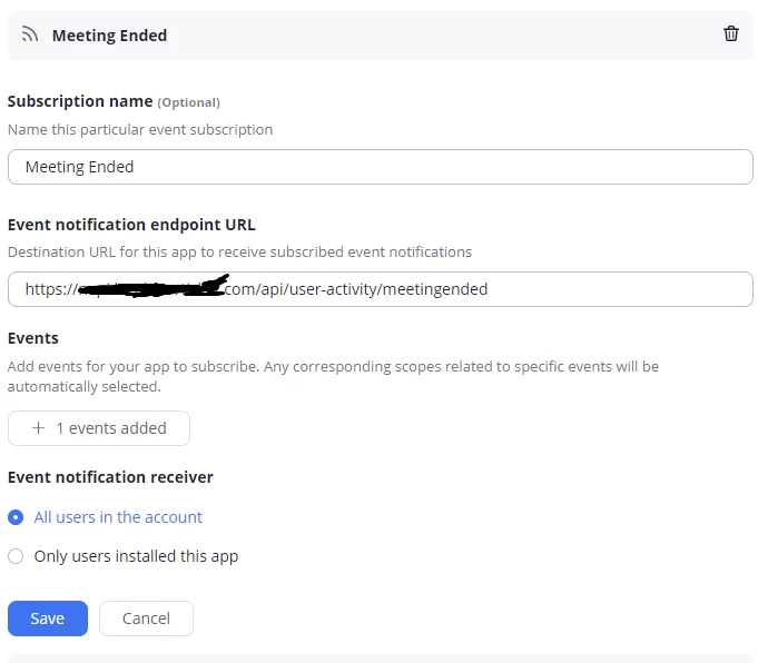But when I set for meeting end event, it's not called.