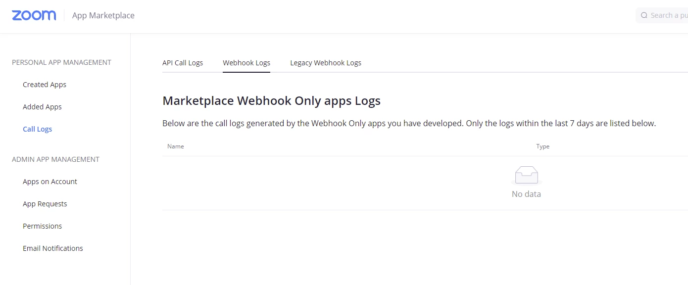 Webhook log shows nothing