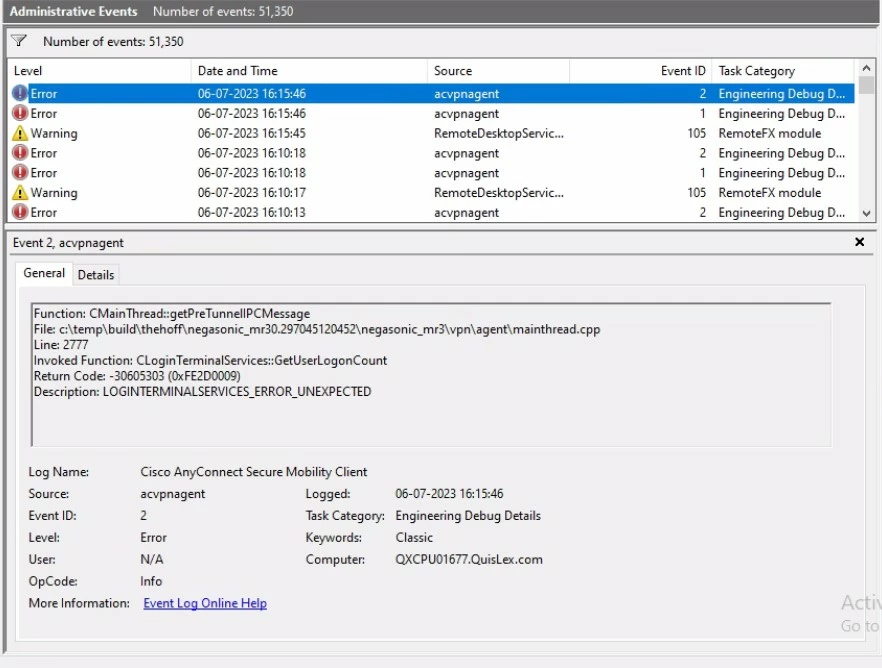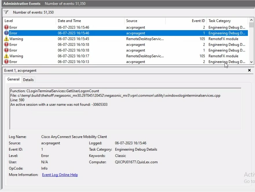 Attaching event logs at the time of RDP disconnection.