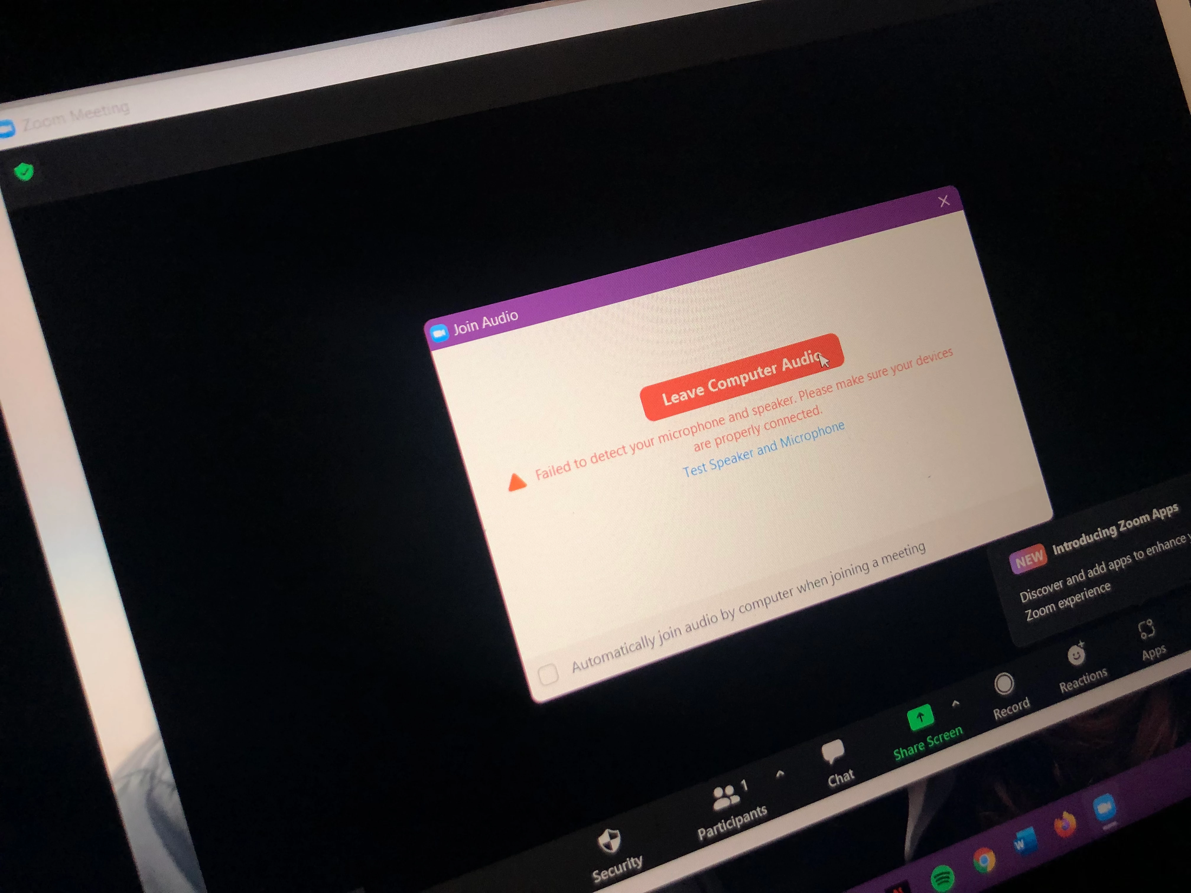 Zoom audio Error