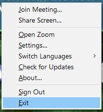 The most recent versions of Zoom (I have 5.12.9 (10650))seem to think they're TSRs -- when I terminate them they stay resident in memory, keep me signed in, and only appear in the Windows Task Manager's process tab. How do I get Zoom to behave like a normal program and terminate completely when I shut it down?