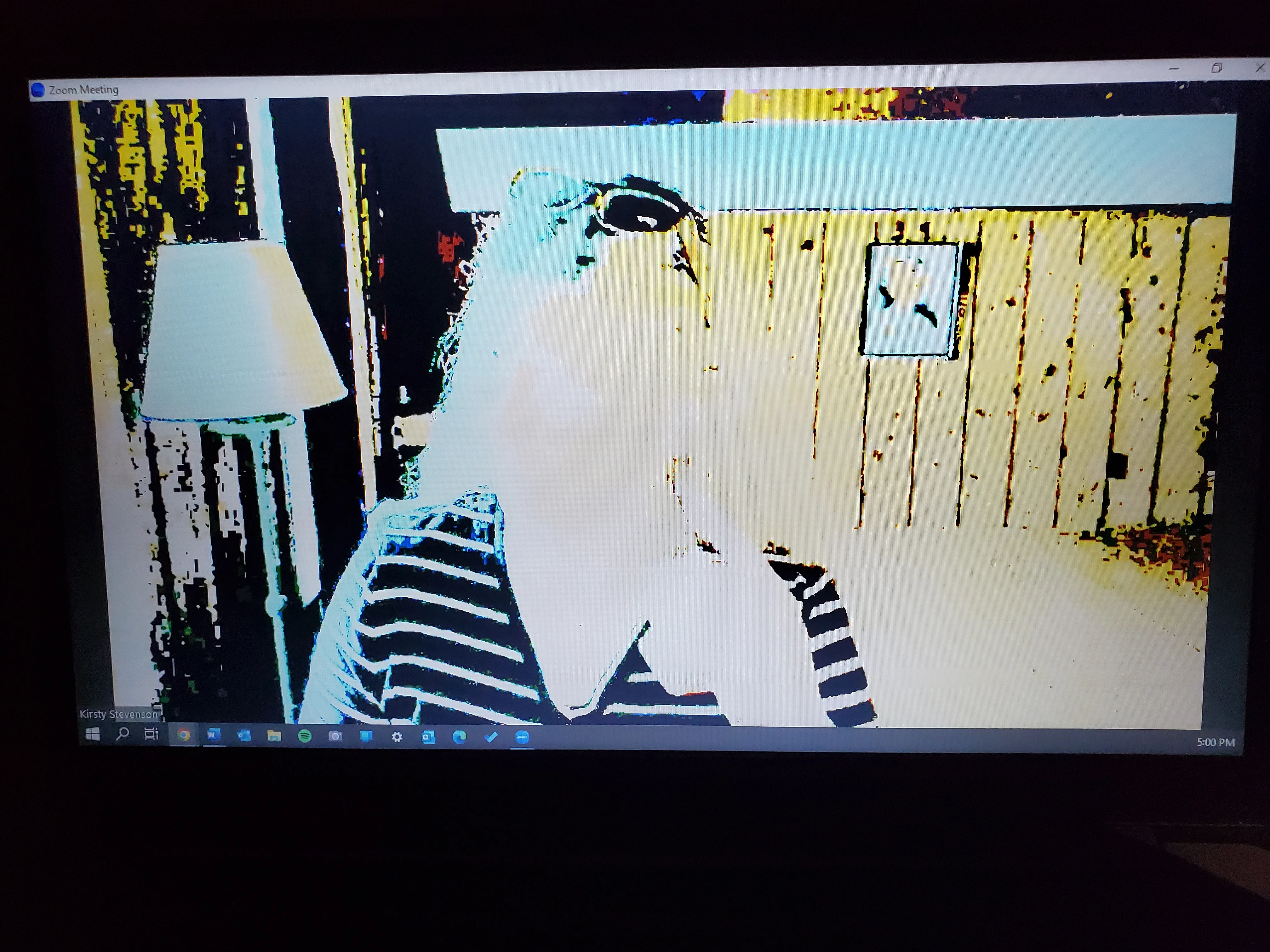 my video image keeps going glitchy. I've tried so many different things to resolve this: uninstalled and reinstalled zoom; changed computers; changed video cameras; moved to ethernet direct rather than via wifi; turned off all bluetooth hardware (keyboard, mouse, phone, etc.) while on zoom - this one seems to work the best and when i want to use the bluetooth keyboard again then the video signal goes wonky again. I've included a screen shot. I've reached out to my internet provider and because Zoom is the only program affected it seems this may be where I can find a solution to the problem. Any ideas?