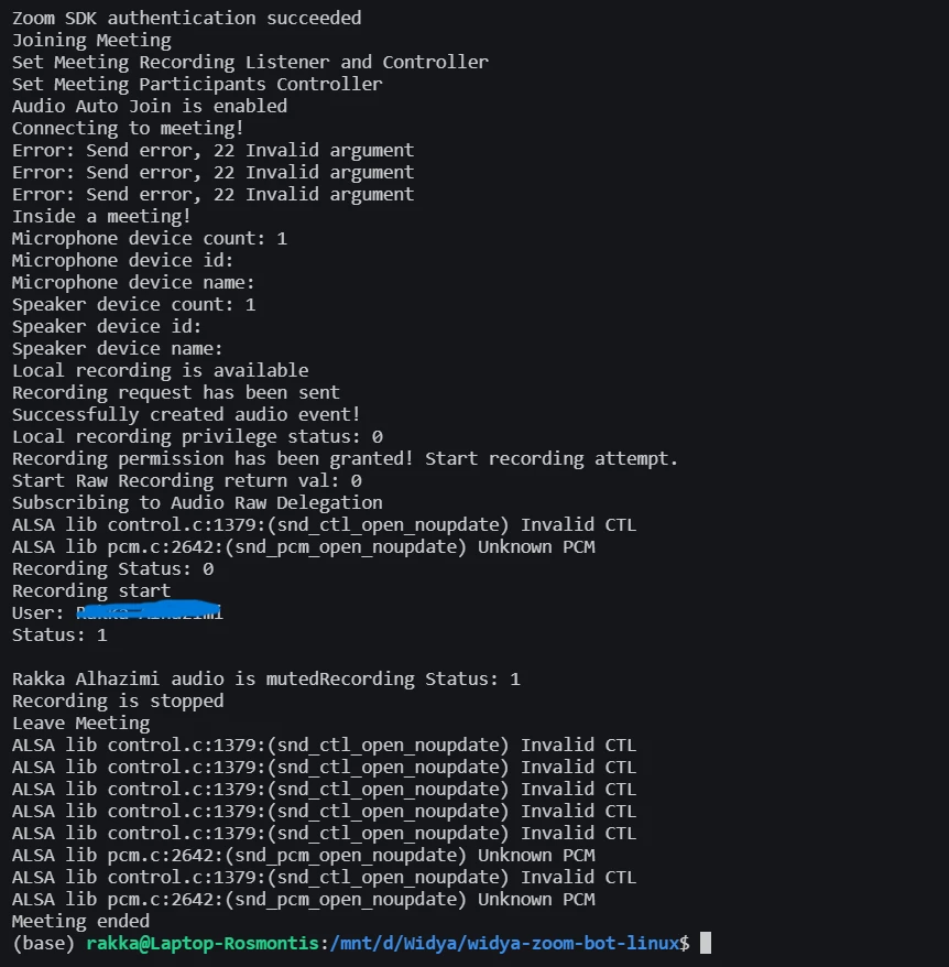 Zoom Linux SDK audio recording not working