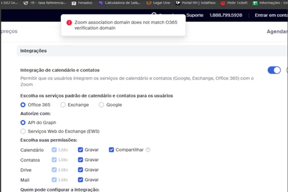 We’re trying to integrate Zoom with Office 365 for calendar and contacts sync. However, we’re running into these errors: