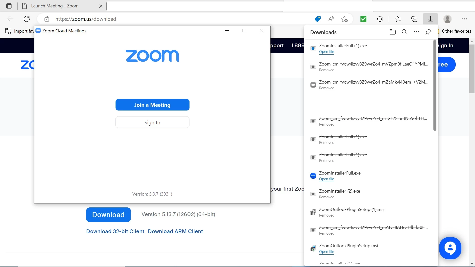 I am trying to help one of our customers that was originally using Zoom for Windows 5.9.7.3931; however, after attempting to upgrade to Version 5.13.7, Zoom always re-directs to the web browser and will not the Windows client.