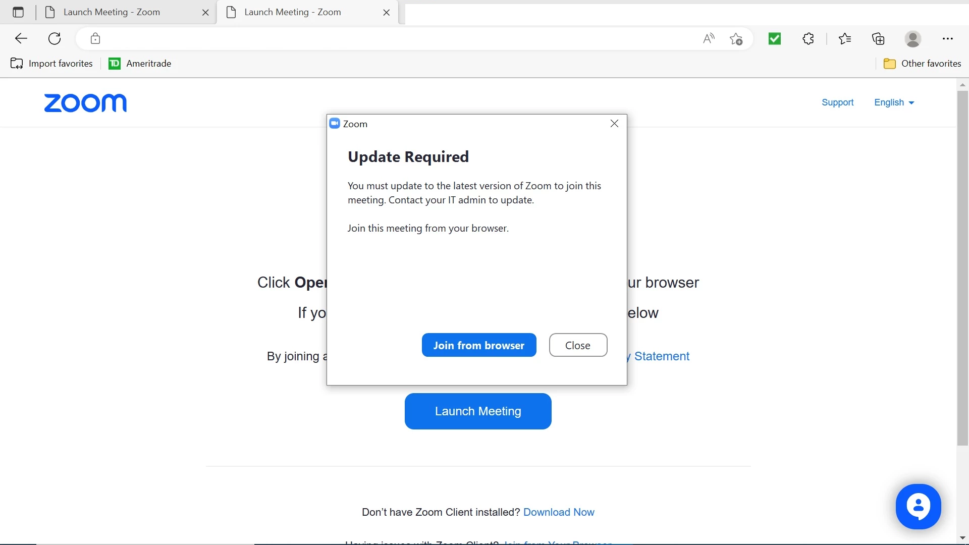 Then, whenever they join or start a Zoom meeting, they see the following and directed to the the web client.