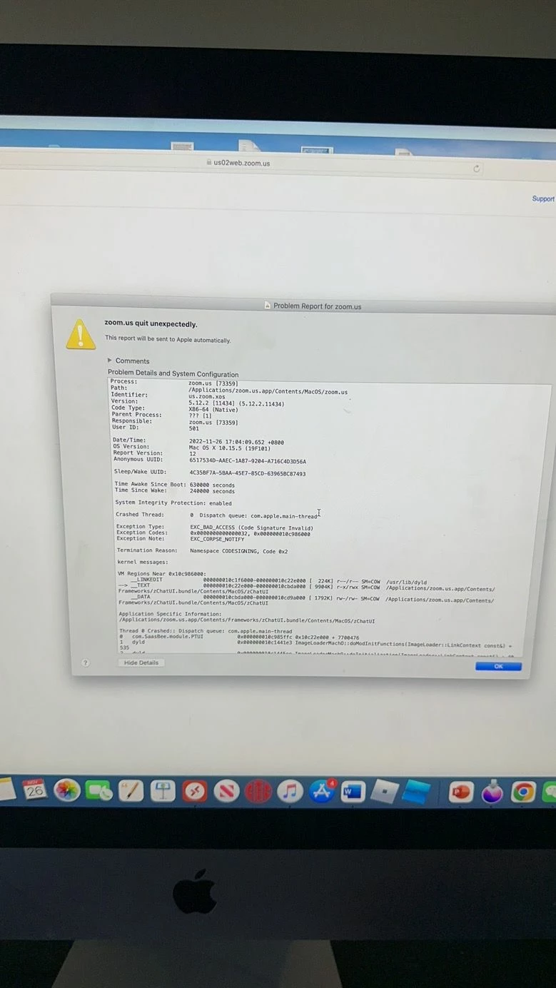When open the zoom on Mac OS 10.15.5, it quit unexpectedly, as attached, anyone can help me?