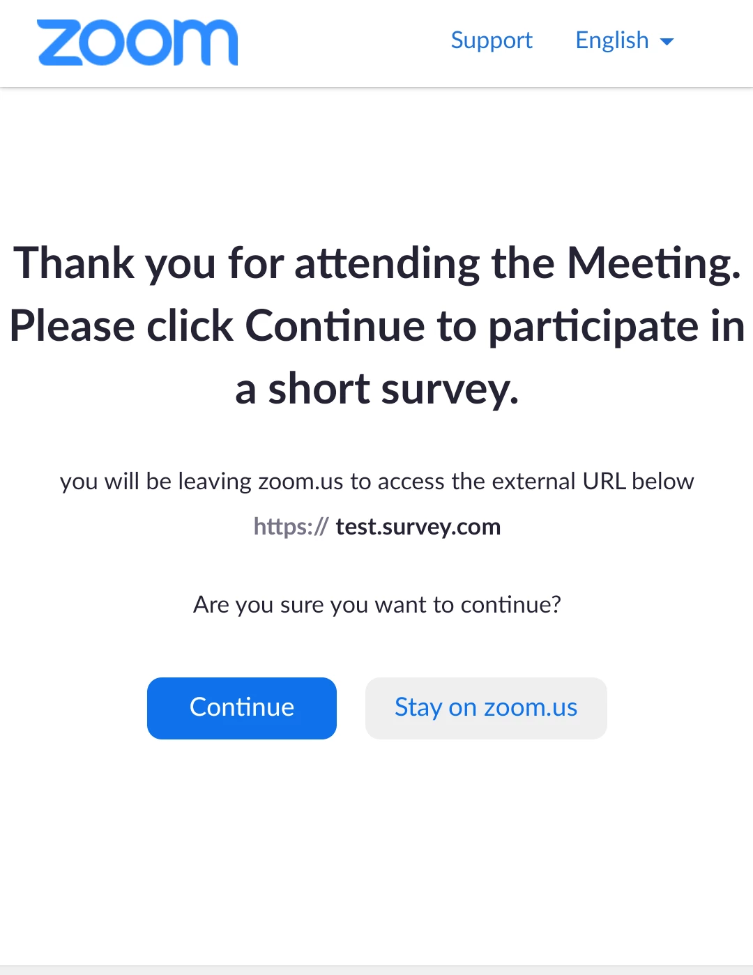 After meetings ends, attendees/ participants will be redirected to the past meeting page with your 3rd party survey link --> see screenshots attached .