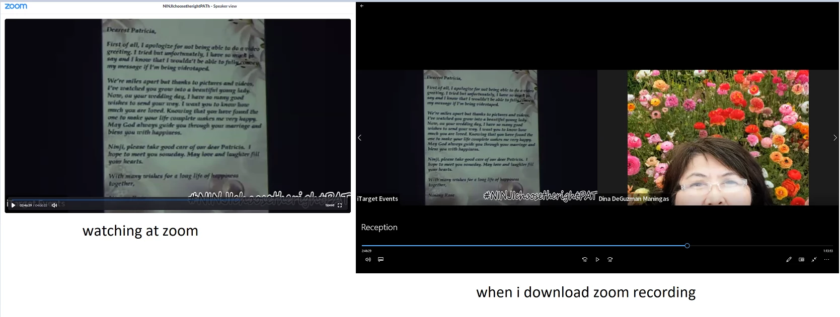 Whenever i download my wedding video recording on zoom