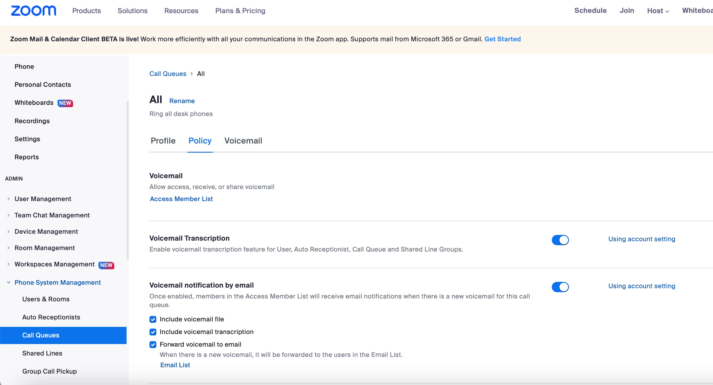 With 50 numbers in the call queue and each of them receiving 2 emails for every voicemail left, it can start clogging up the inbox.