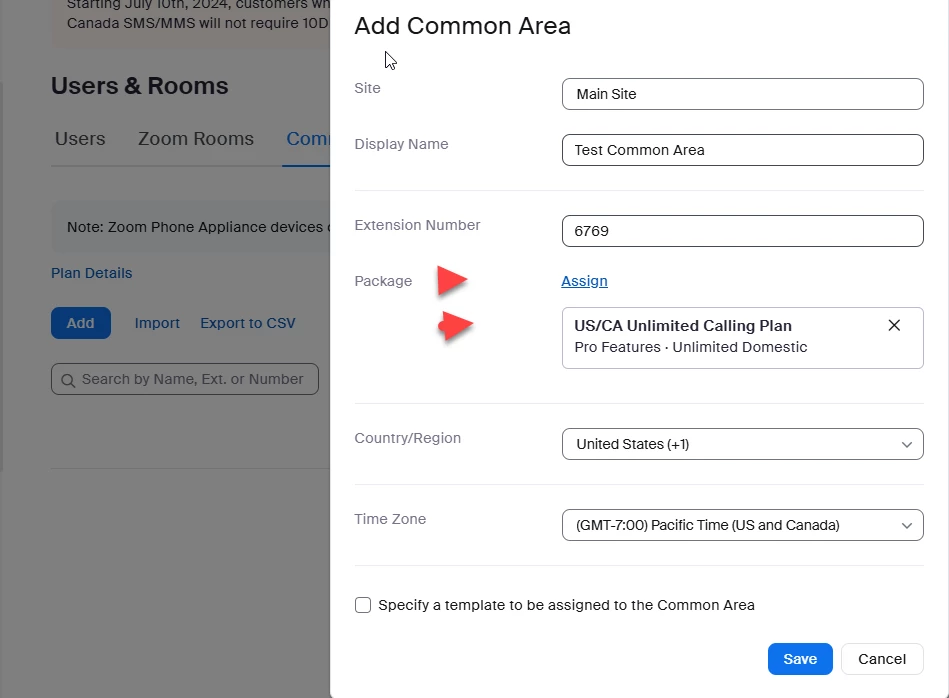When trying to assign a phone package to a common area room, I am unable to do it. It requires you to assign a package, of which I should have plenty of licenses for, and when I click the drop-down, it is blank and says "No Data".