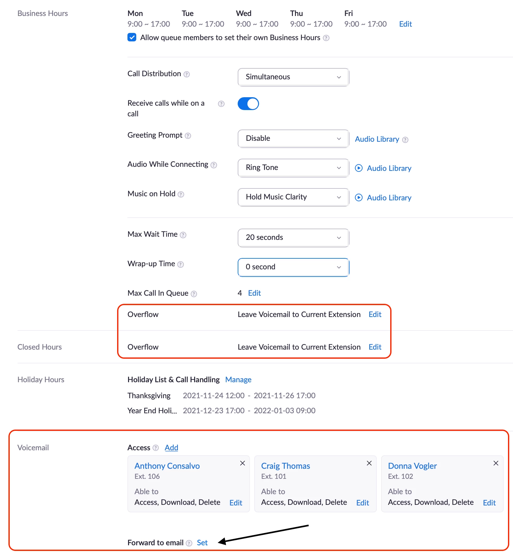 Is there any chance that if no one answered the calls/call queue it will go directly to email?