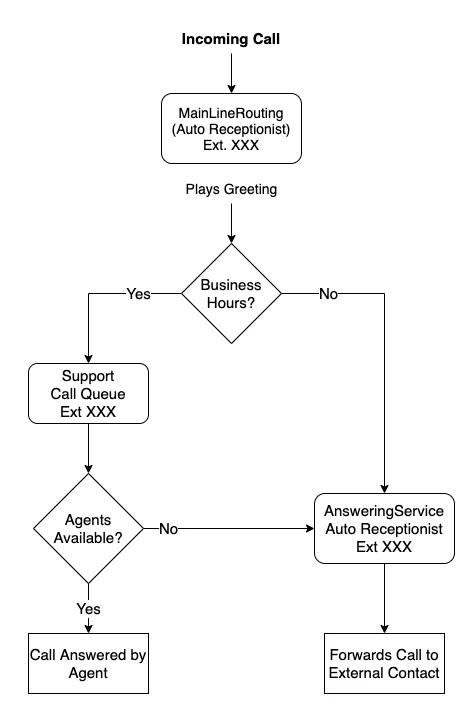 Trying to get this call flow to work (see image attached) but if no agent is in the call queue (eg; out to lunch)