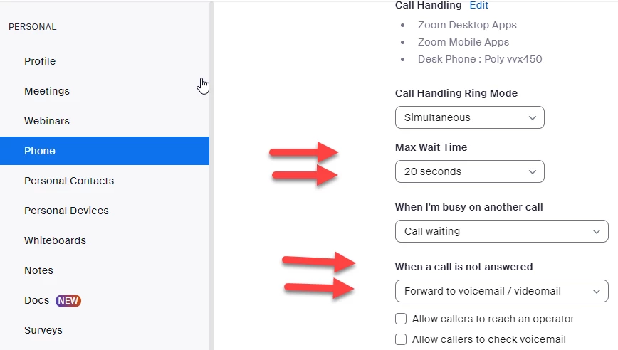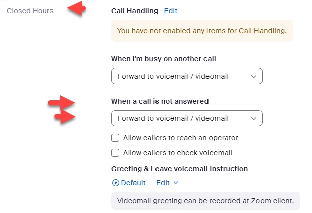 Any reason why call handling isn't working for some reason? Setting is set for user to forward to voicemail if it's not answered. It works if the user rejects the call, but if they do not answer it only plays the message without going to voicemail. Any ideas?