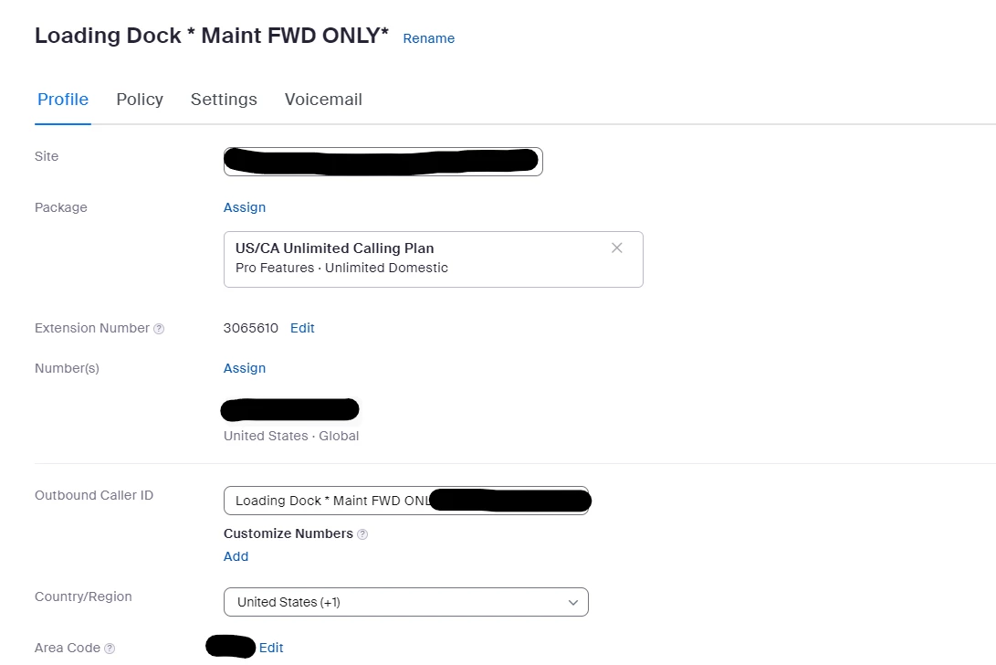 - ext 200- Common area extension - unlimited package, set to not ring and fwd to an Auto Reception that in turn is set to call forward to a cell phone.