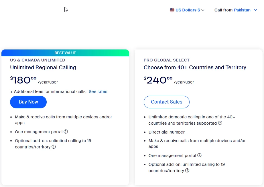 or to call from Pakistan to the USA for free I'll have to buy the $20 package?
