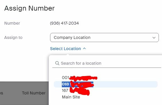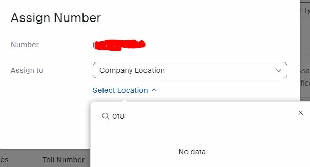 I want to assign a number to a company location. When I navigate to Phone System Management > Phone Numbers > Unassigned, I have a list of numbers, and I can assign it to a user, but when I try to assign it to a Company Location, it doesn't show any of my locations. See attachment.