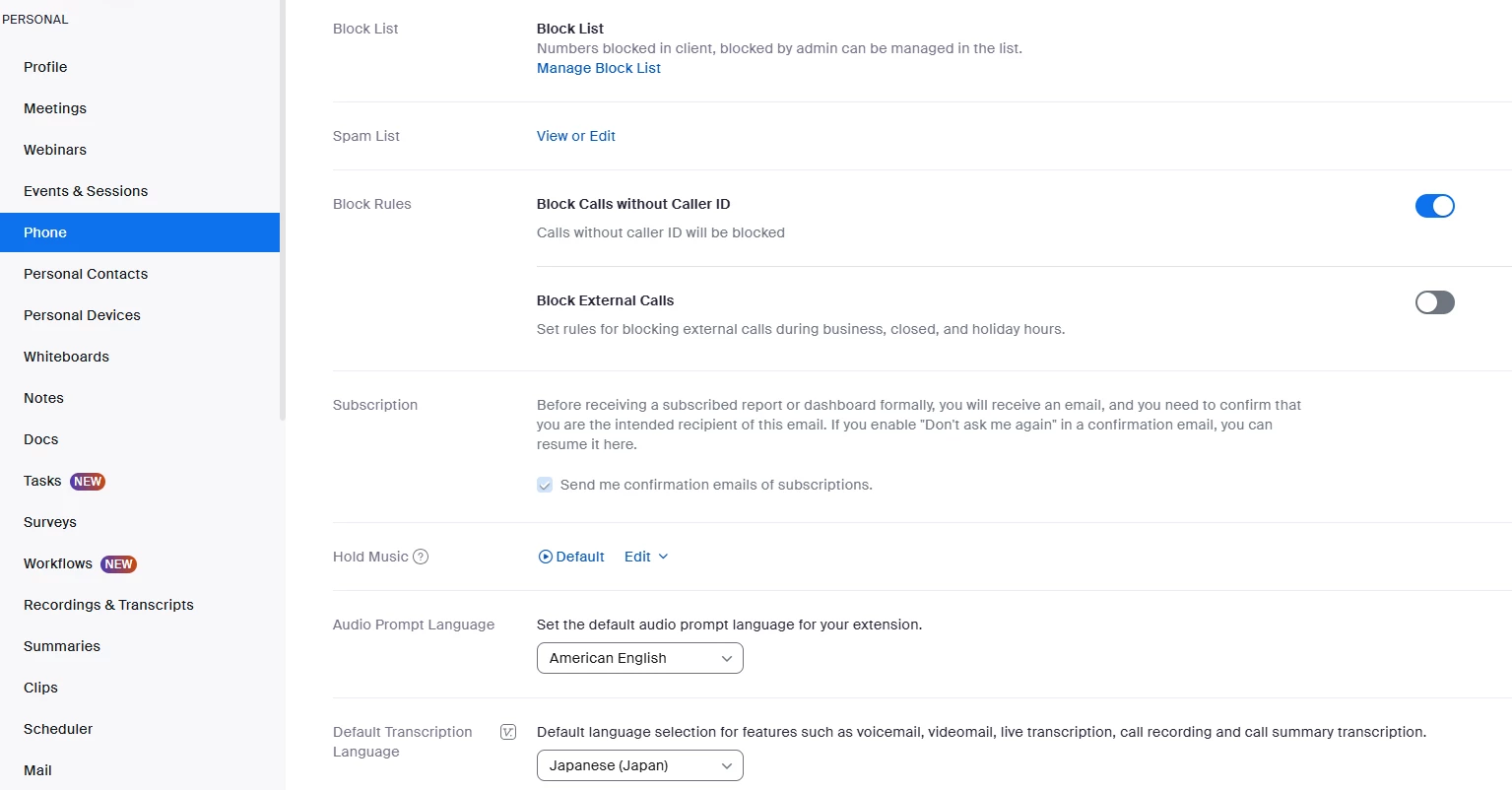 Changing the default language for transcription with ZoomPhone