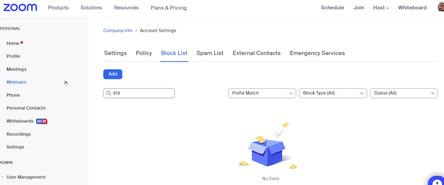 You're looking at the corporate global blocking list... not your personal blocked list.