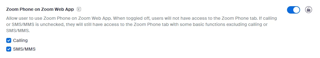check to see that Zoom Phone on Zoom Web App is enabled.
