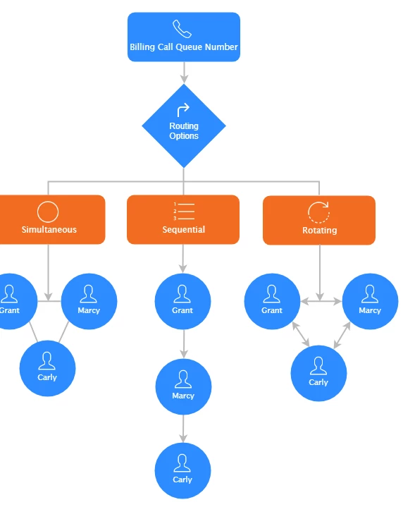 The sticking point is that some of the "members" must be an external numbers. Does such call routing method exist in Zoom phone? In the graph below, imagine if Carly and Grant are cell phone numbers?