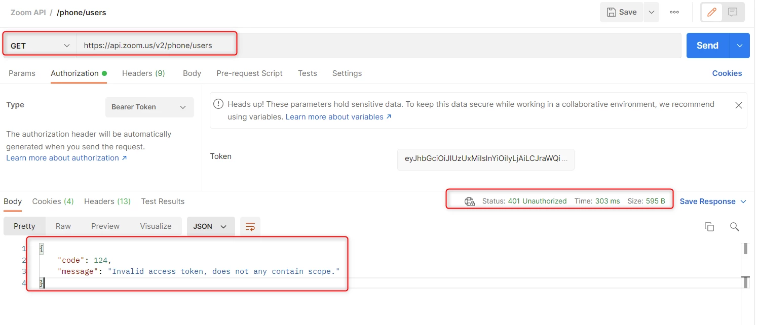 Invalid access token, does not any contain scope